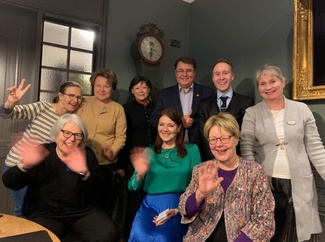 Töölön Kansallisseuran hallituksen jäseniä (yläkuvassa) oli 17.1. mukana YLE:n presidenttitentissä. Kuvassa vasemmalta lukien Tuula Kallio, Suvi Rihtniemi, Matti Niiranen, Juha Liukkonen (pj), Esa Eriksson, presidenttiehdokas Alexander Stubb, Päivi Mattsoff, Natalia Sazonova ja Markku Nissinen.