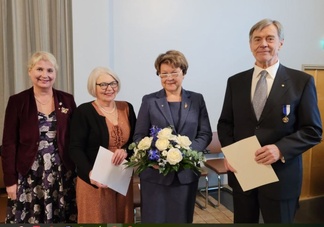 Kokoomuksen hopeisen ansiomerkin vastaanotti ansioistaan TÖKS ry:n pitkäaikainen aktiivi Ulla Matsi-Koistinen